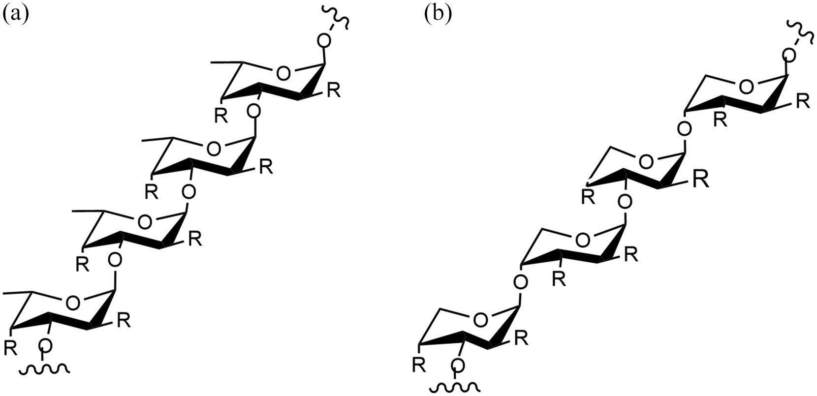 일반적인 구조적 성분으로는 후코스, 만노스, 갈락토오스, 포도당, 자일로스와 같은 단당류, 우론산, 때로는 아세틸 그룹과 단백질이 포함됩니다.