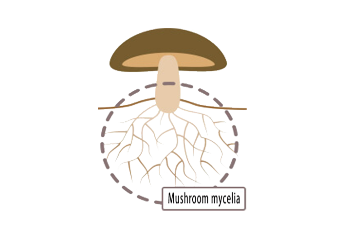 Mycelia are the root-like parts of fungi that grow in the soil or wood, while the umbrella-shaped part we generally eat as a mushroom is the fruiting body of fungi.